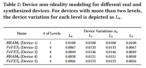 其中,v是部署在加速器上的实际嵌入向量,v0是目标嵌入向量,σv是实验中测得的标准差。我们收集了 RRAM 与 FeFET 器件的测量结果,具体数值将在后续讨论。