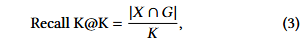 其中X表示检索到的候选集,G是K个最近邻的真实集。
