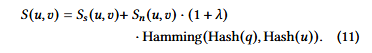 在查询阶段,给定查询向量q,系统会计算其哈希码,并按照下述方式将其与每个候选对象u进行对比: