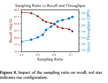 该分析表明,基于采样的搜索能有效降低向量 I/O 开销,同时保持搜索质量,特别是当采样率 ρρ 经过精心调优以平衡召回率和效率时。
