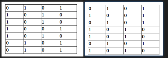 step2.分别将原来的布尔向量矩阵的行依次按照每个全排列进行重排,例如,对于h1和h2重排后因此得到下面两个矩阵mh1和mh2