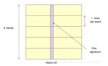 需要将这个矩阵分成b组(b个bands),每一组有r行,且每一个band拥有独立的桶空间。